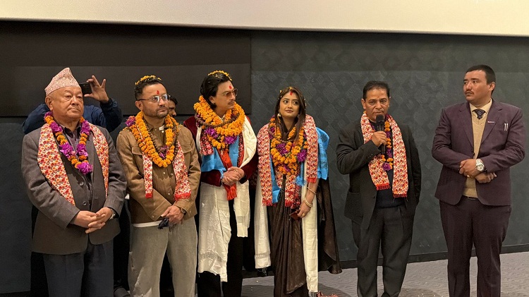 फिल्म ‘आ बाट आमा’का अभिनेता पल शाह, अभिनेत्री उषा उप्रेती र निर्देशक, निर्माता चन्द्र पन्त, इलाम नगरपालिकाका मेयर केदार थापा र निवर्तमान सांसद महेश बस्नेतले संयुक्त रुपमा सिनेमाको शुभारम्भ गरे ।